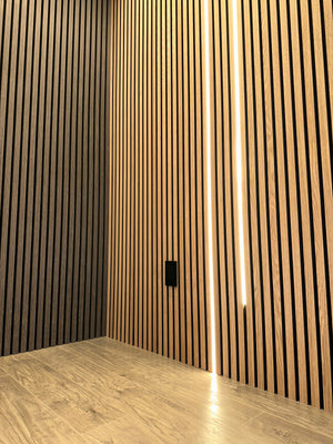 Enhance your wood slat wall panels with our LED Channel, designed to fit seamlessly between the slats for a clean, modern look. This precisely engineered LED channel allows you to integrate energy-efficient LED lighting directly into your wood slat wall installation, providing a sleek, ambient lighting solution without compromising the beauty or design of your space. Ideal for both residential and commercial applications, this LED channel transforms your wood slat walls into a stunning, functional feature.