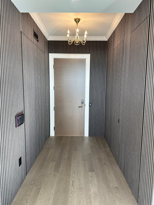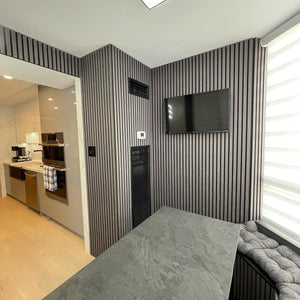 Designed to add a sophisticated and contemporary touch to any room. Perfect for living rooms, offices, or commercial spaces, these premium wood slat wall panels bring a modern aesthetic with their sleek, minimalist design.