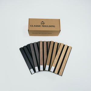 5 Beautiful Color Variants: The sample box includes swatches of five distinct wood slat panel colors, including: